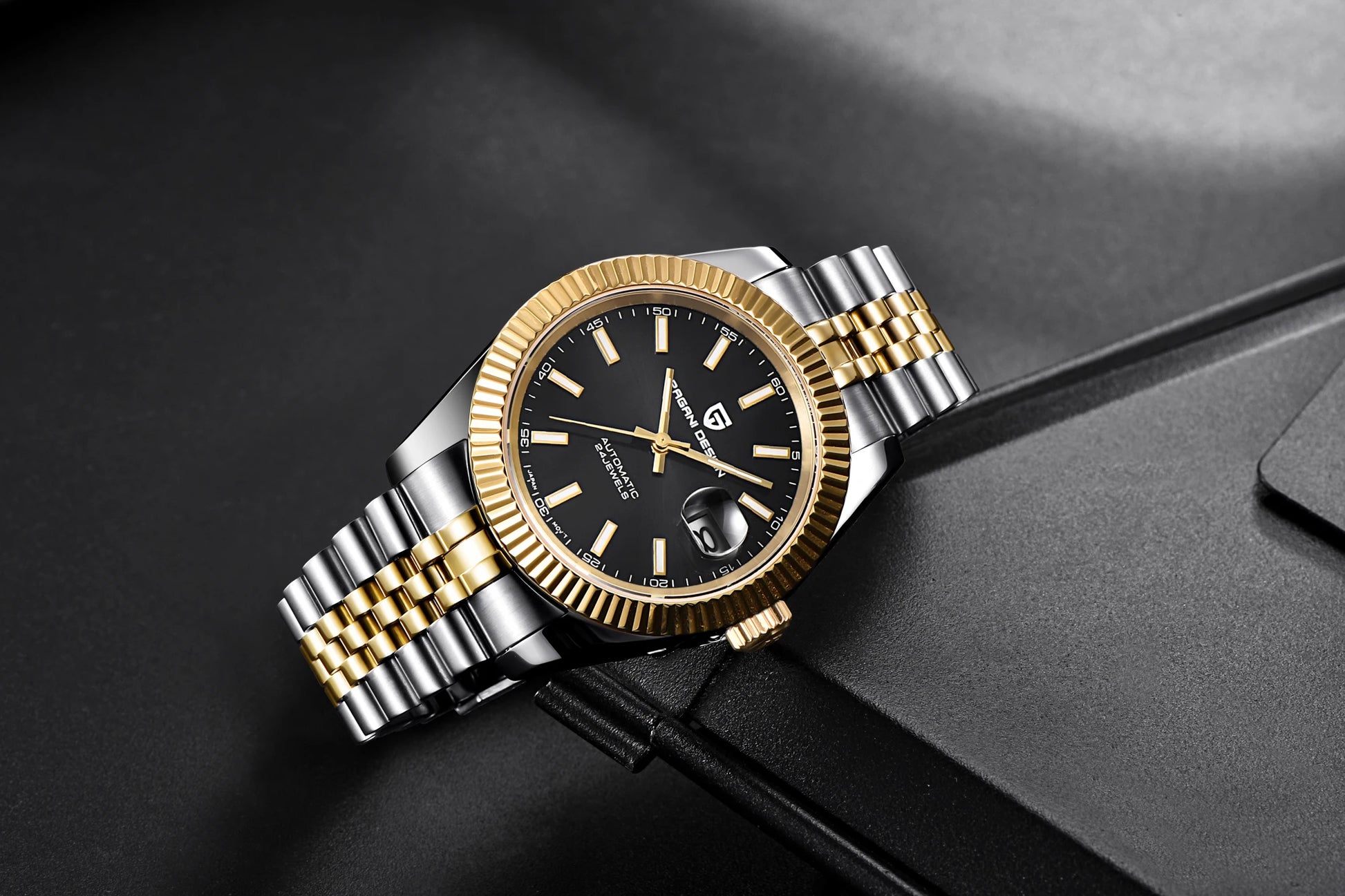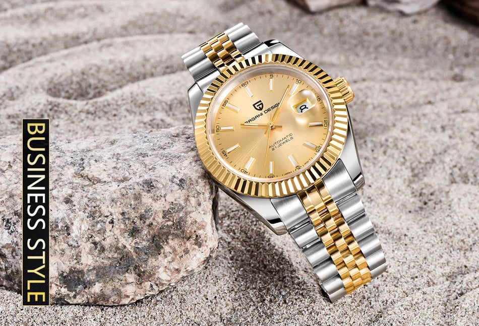 Complete your formal wardrobe with this timeless RBB PAGANI DESIGN PD-1645 V3 luxury watch. Crafted from durable stainless steel with scratch-resistant sapphire glass, this automatic mechanical timepiece offers precise Japan movement without the need for batteries. The screw-down crown enhances water resistance up to 10 bar, perfect for diving or everyday wear. Adjustable stainless steel links ensure a comfortable, secure fit.