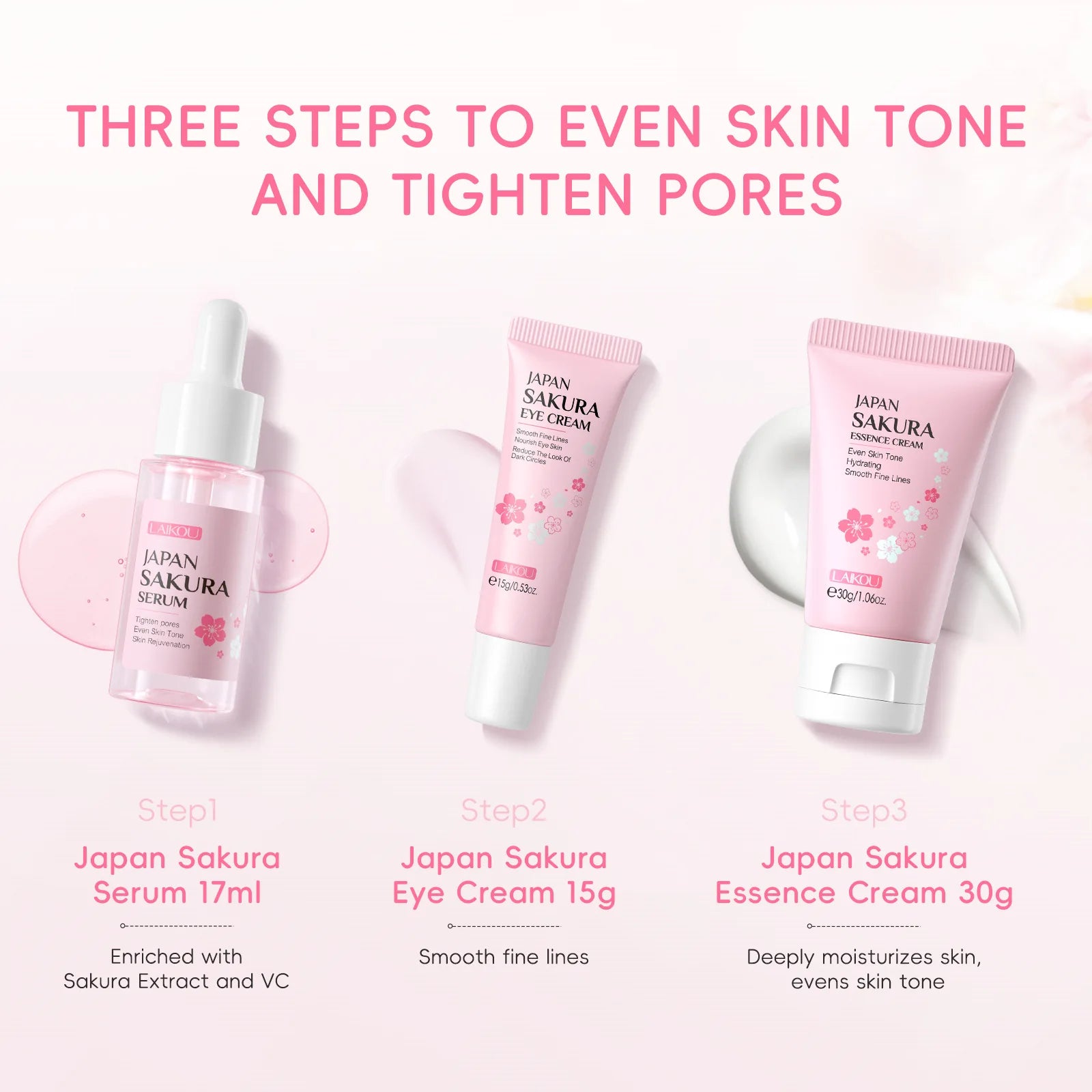 3-Piece Sakura Skincare Set – Cream, Serum & Eye Cream for Daily Moisturizing