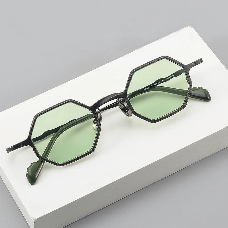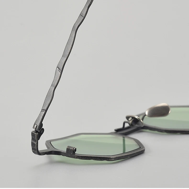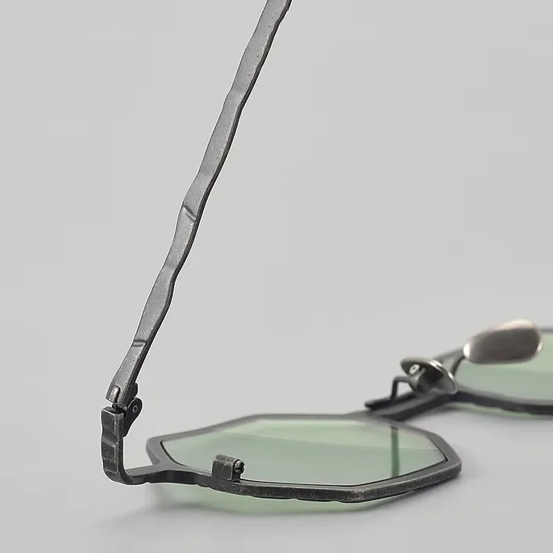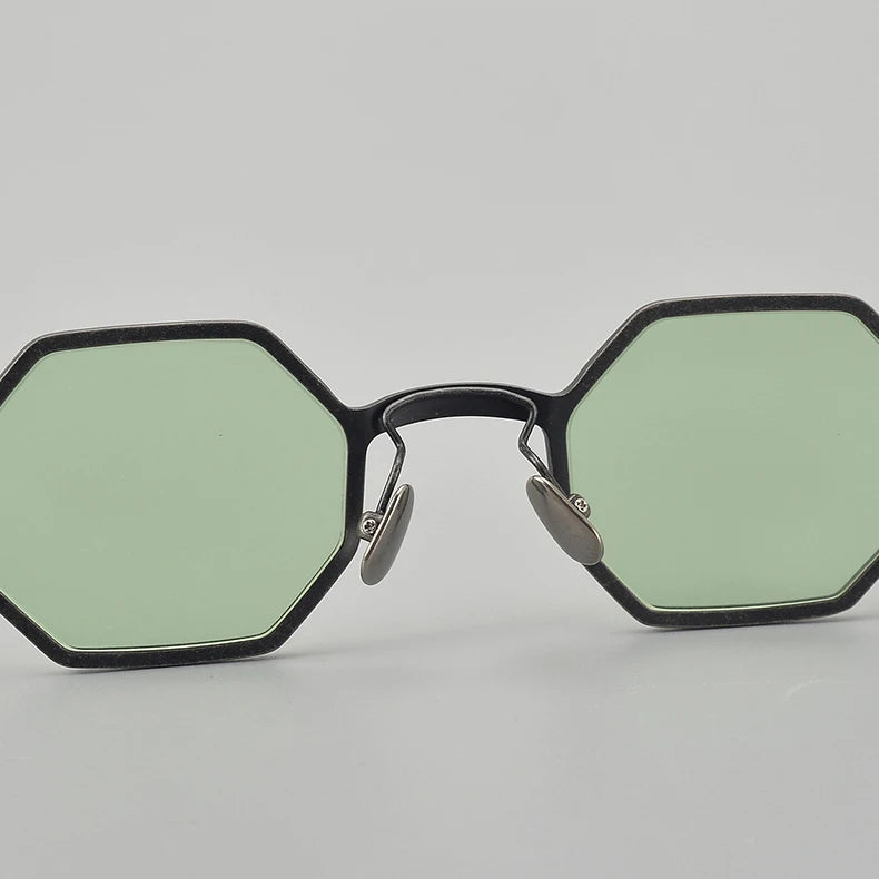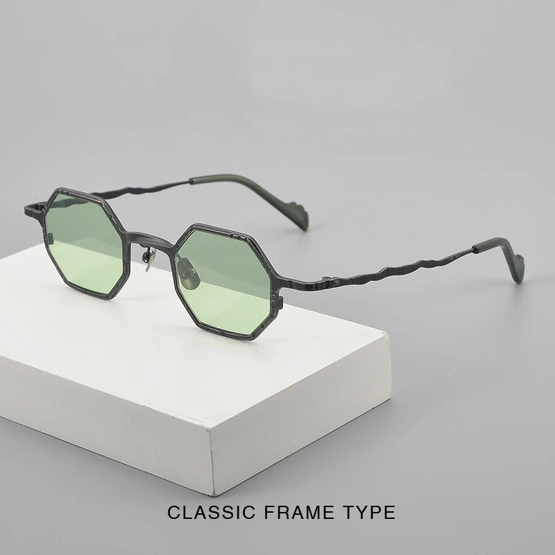 RBB Black Steampunk Retro Polygonal Pure Titanium Sunglasses – UV400 Protection for Men & Women