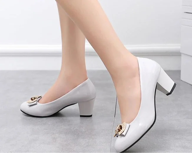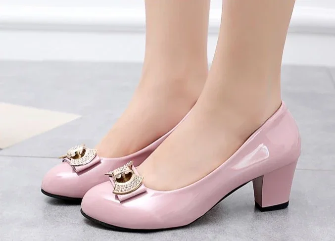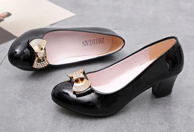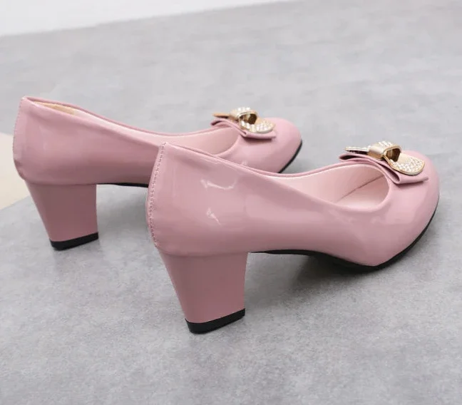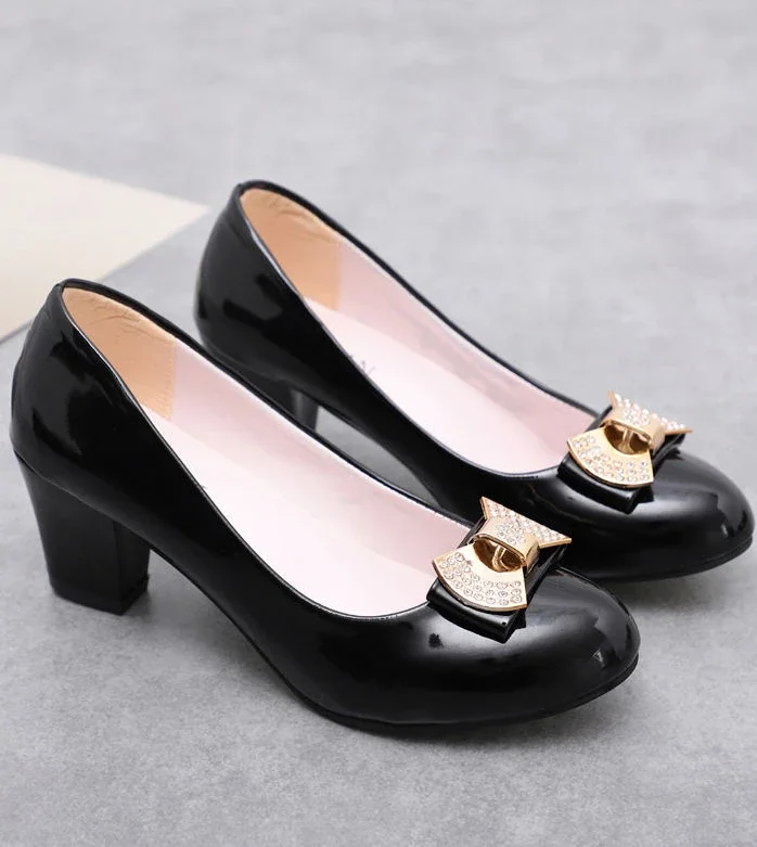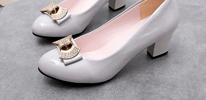RBB Luxury Y2K Block Heel Pumps with Bow – Formal Chunky Heels for Women