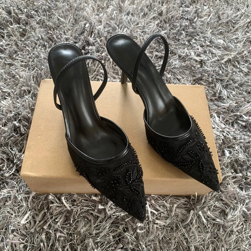 RBB Designer White Wedding Pumps – Embroidered Mesh Floral Slingback High Heels for Women