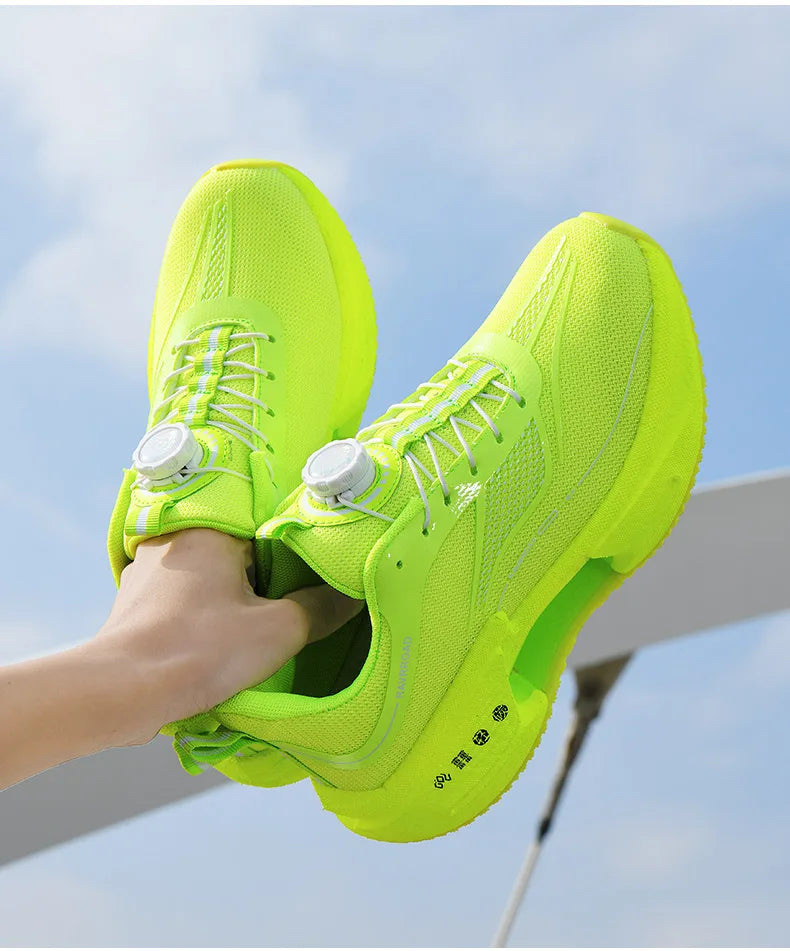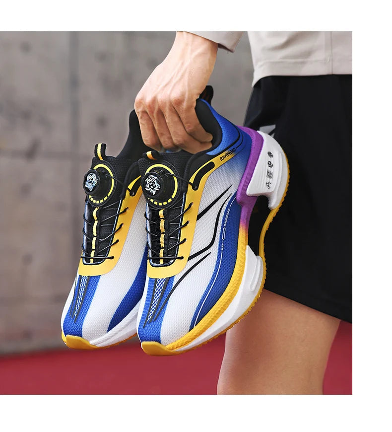 RBB Family Carbon Plate Running Shoes – Boys & Girls High Bounce TPU Popcorn Sneakers with Rotating Button Technology