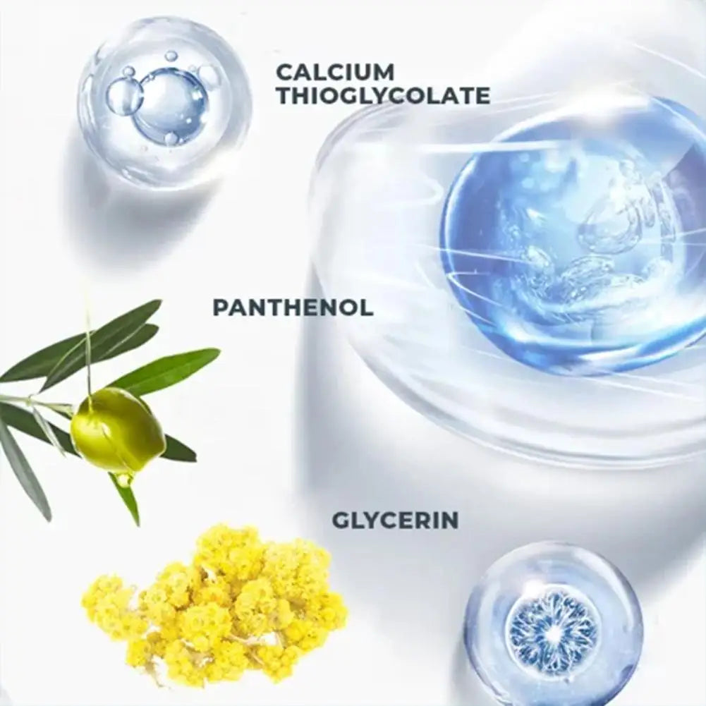Calcium Thioglycolate – Breaks down hair at the root