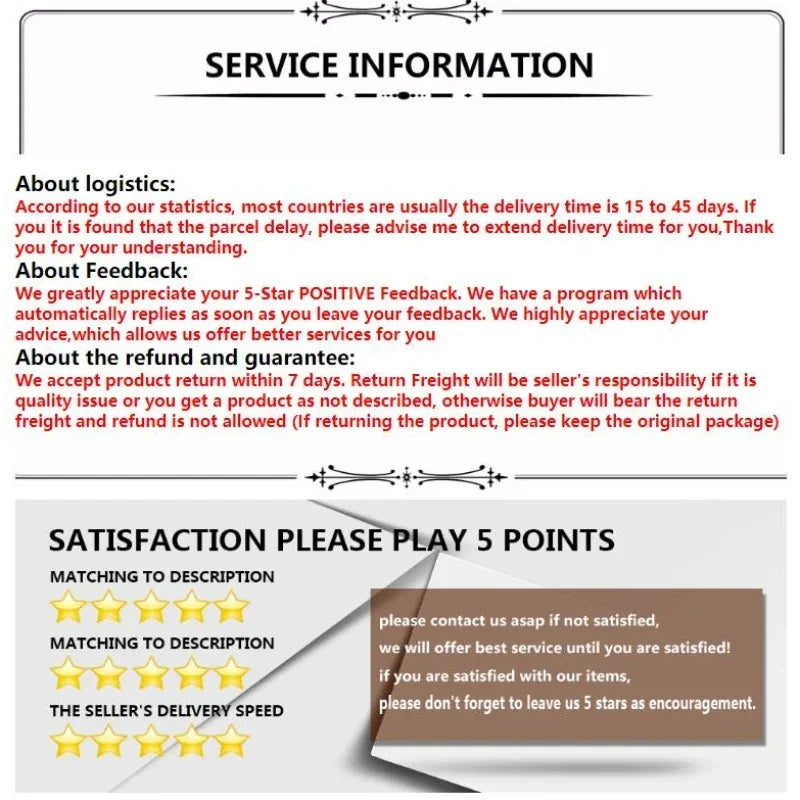 Return Policy: Items must be returned in original condition. Buyer is responsible for return shipping fees.