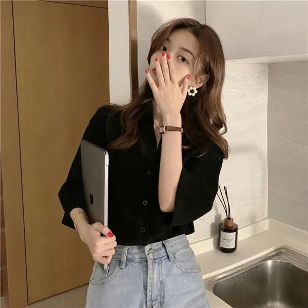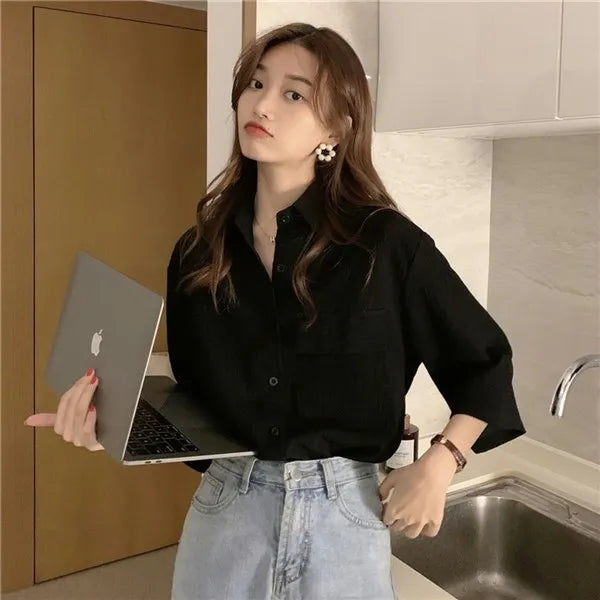 RBB Women's Retro Quarter Sleeve Shirt – Loose Fit Casual Summer Outerwear