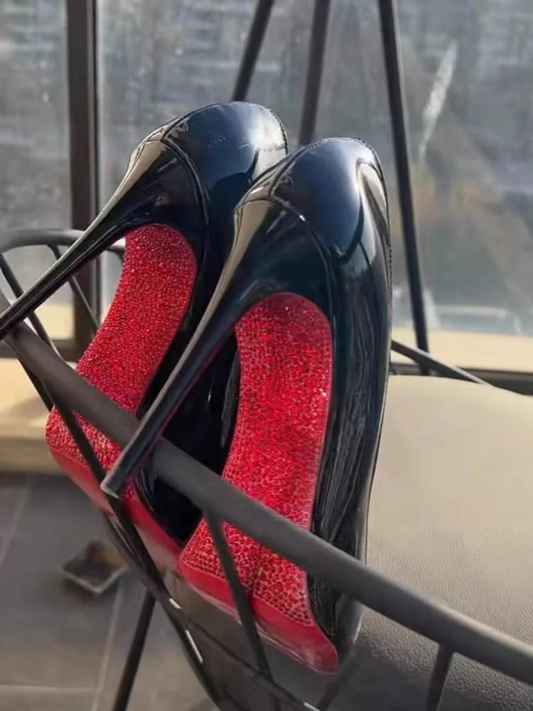 RBB Rhinestone Black Patent Pointed-Toe High Heels – Sexy Slim Wedding & Party Pumps