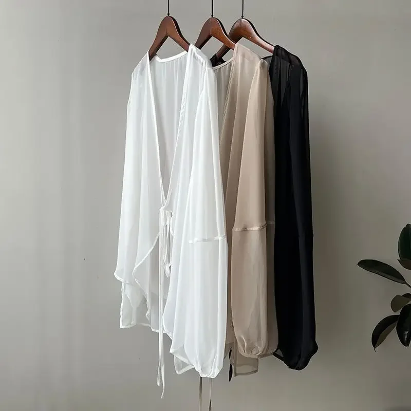 RBB Women's V-Neck Chiffon Shirt – Loose Fit Lace-Up Long Sleeve Summer Blouse