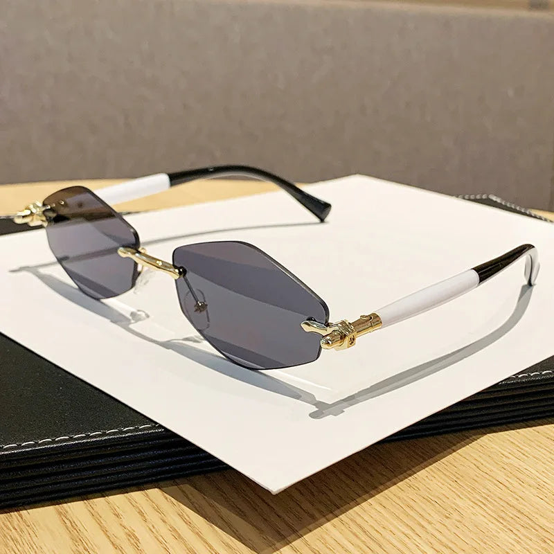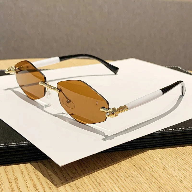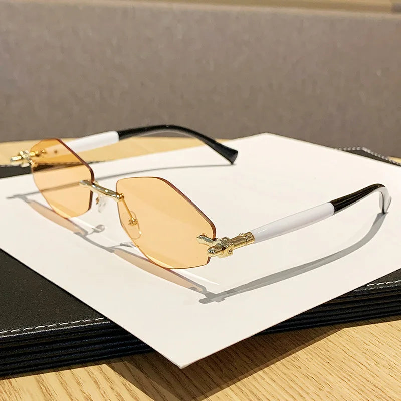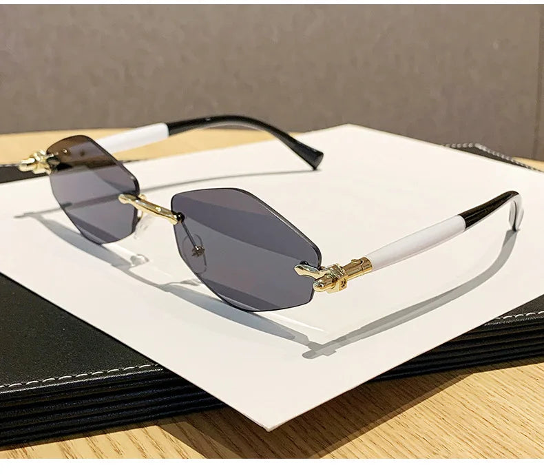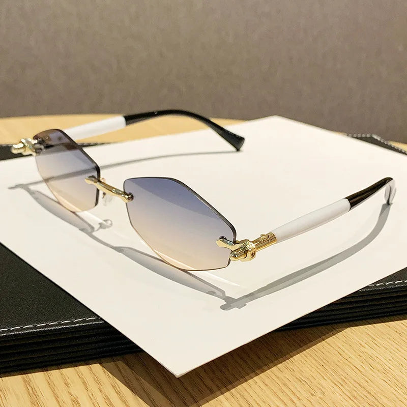 RBB Small Rhombus Gradient Sunglasses – Stripe Print Legs, Unisex Hip Hop Driving Shades