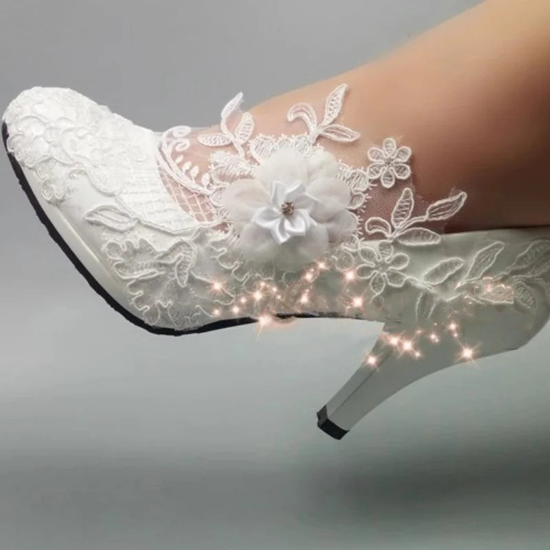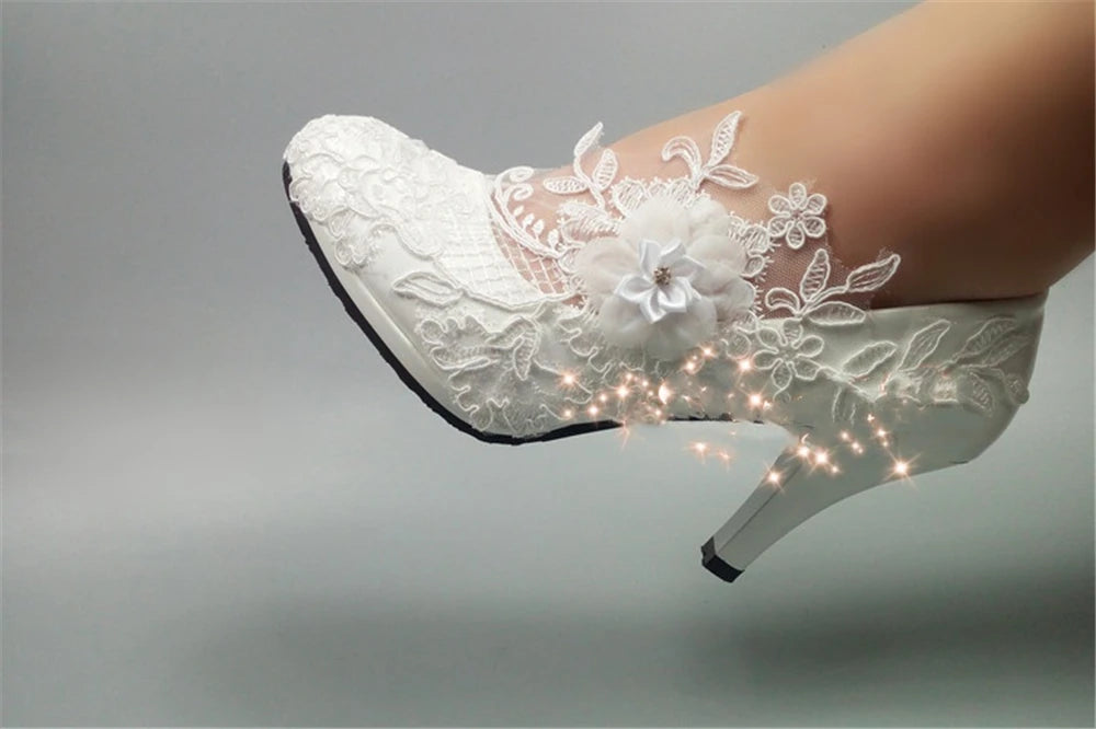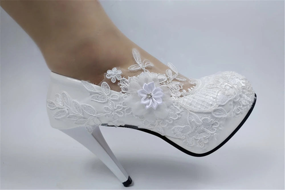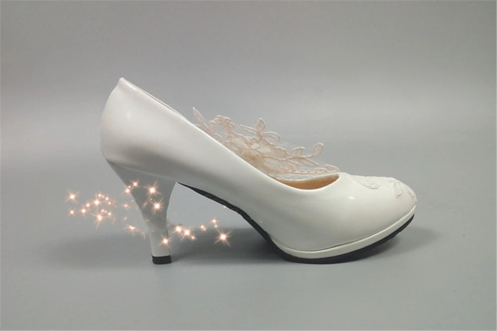 RBB Spring New Round-Toe Waterproof Platform Lace Rhinestone Low-Heel Wedding Shoes – Thin High-Heeled Dress Shoes