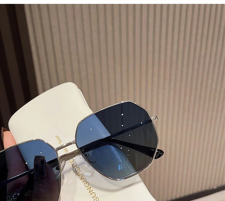 RBB Transparent Blue Polygonal Sunglasses – Large Frame Metal Driving Shades