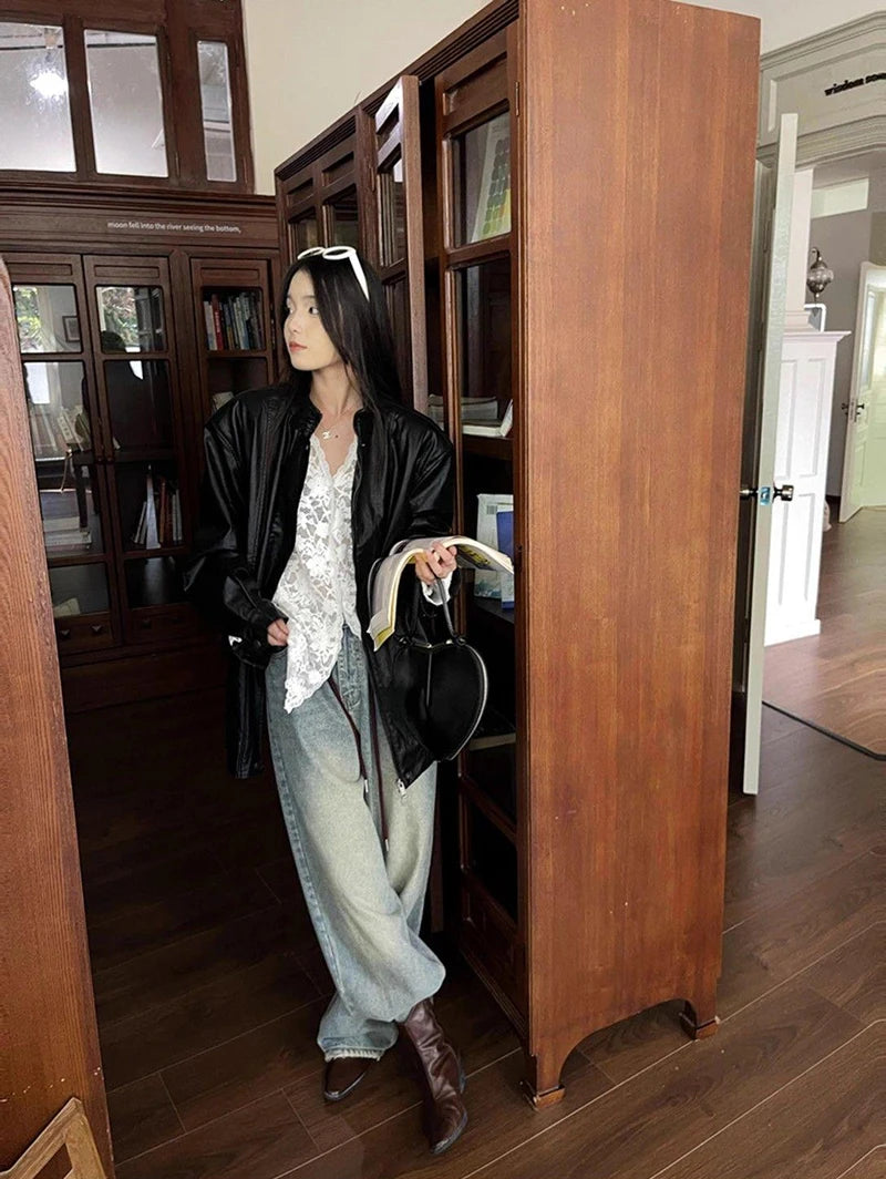 RBB Women's Y2K Lace Sheer Shirt – Sexy Hollow-Out Long Sleeve Streetwear Top