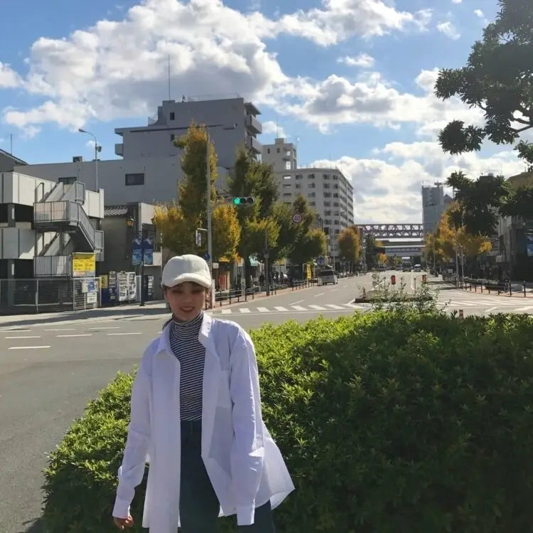 RBB Women's Oversized Minimalist White Shirt – Long Sleeve Button-Up Tunic Blouse